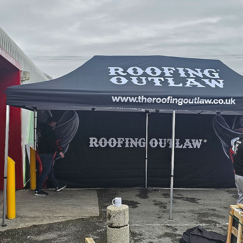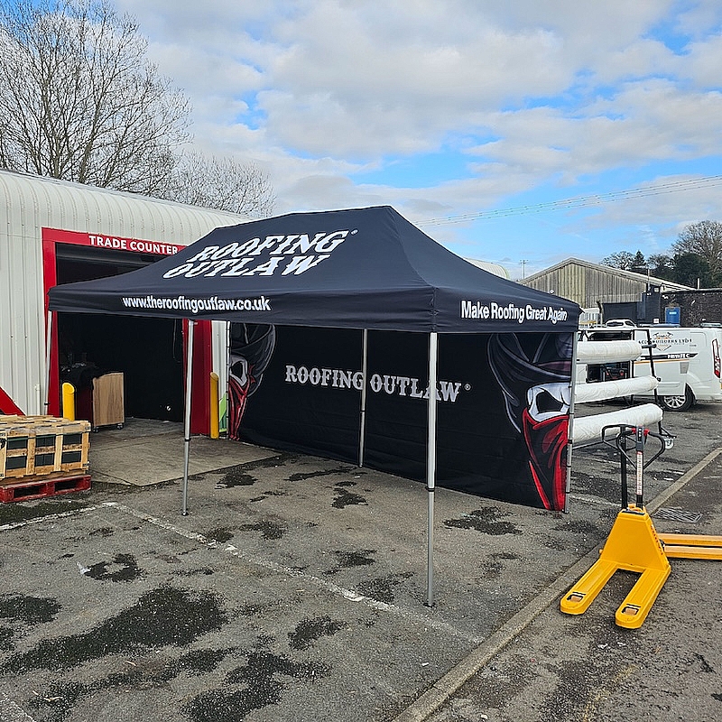 Kit Includes: Full Colour Bespoke Printed Canopy Top Complete With Heavy Duty Aluminium Adjustable Frame, Carry Case, Rope and Spikes